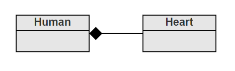 Composition indicates a strong relationship where an object cannot exist without its parent object. For this reason we can say that composition is a design technique aimed at implementing a “part-of” relationship between objects. For example, for a human to exist, they must have a heart; if the heart is removed, the human cannot exist.