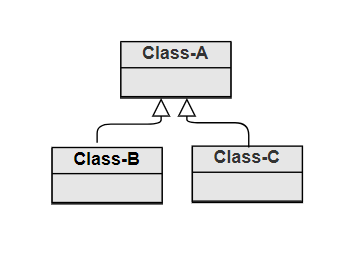 Multiple classes inherit from a single base class. Each derived class represents a specialization of the base class.