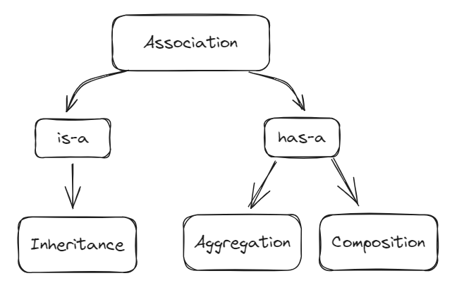 Aggregation and composition are two types of association. Both aggregation and composition establish a “has-a” relationship between objects of different classes. Aggregation represents a weak relationship where an object can exist without its parent object.