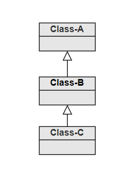 A class derives from another class, and then another class derives from it, creating a chain of inheritance.